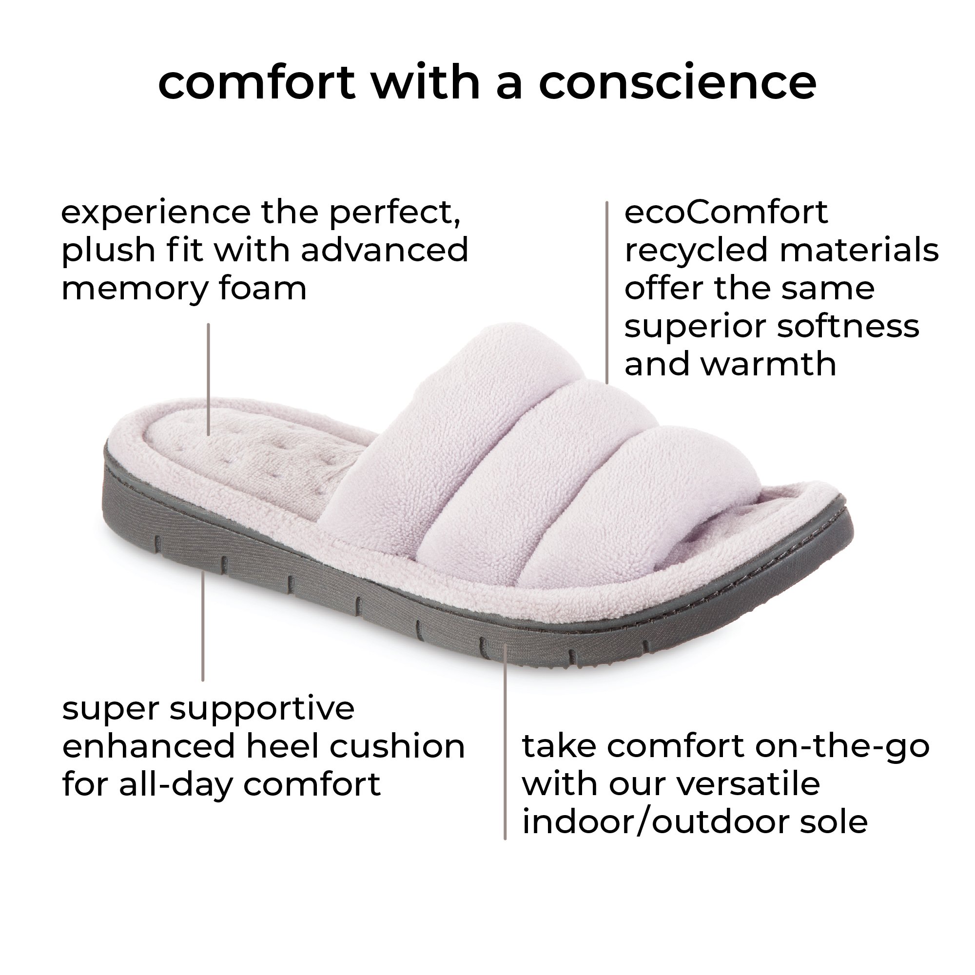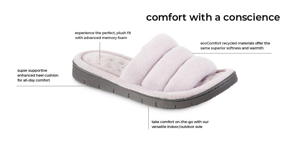 A luxurious Pillowstep footbed with memory foam conforms to your foot, enhanced by an advanced heel cushion for lasting comfort. The moisture-wicking microterry fabric lining keeps feet cool, dry, and undeniably soft.