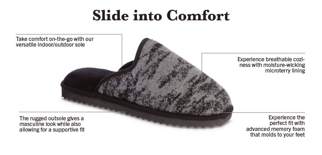 A rugged, masculine outsole grounds the look with confidence while ensuring dependable grip and support on any surface. With a versatile indoor/outdoor sole, the Cooper Scuff embodies Isotoner's commitment to quality, innovation, and timeless style.