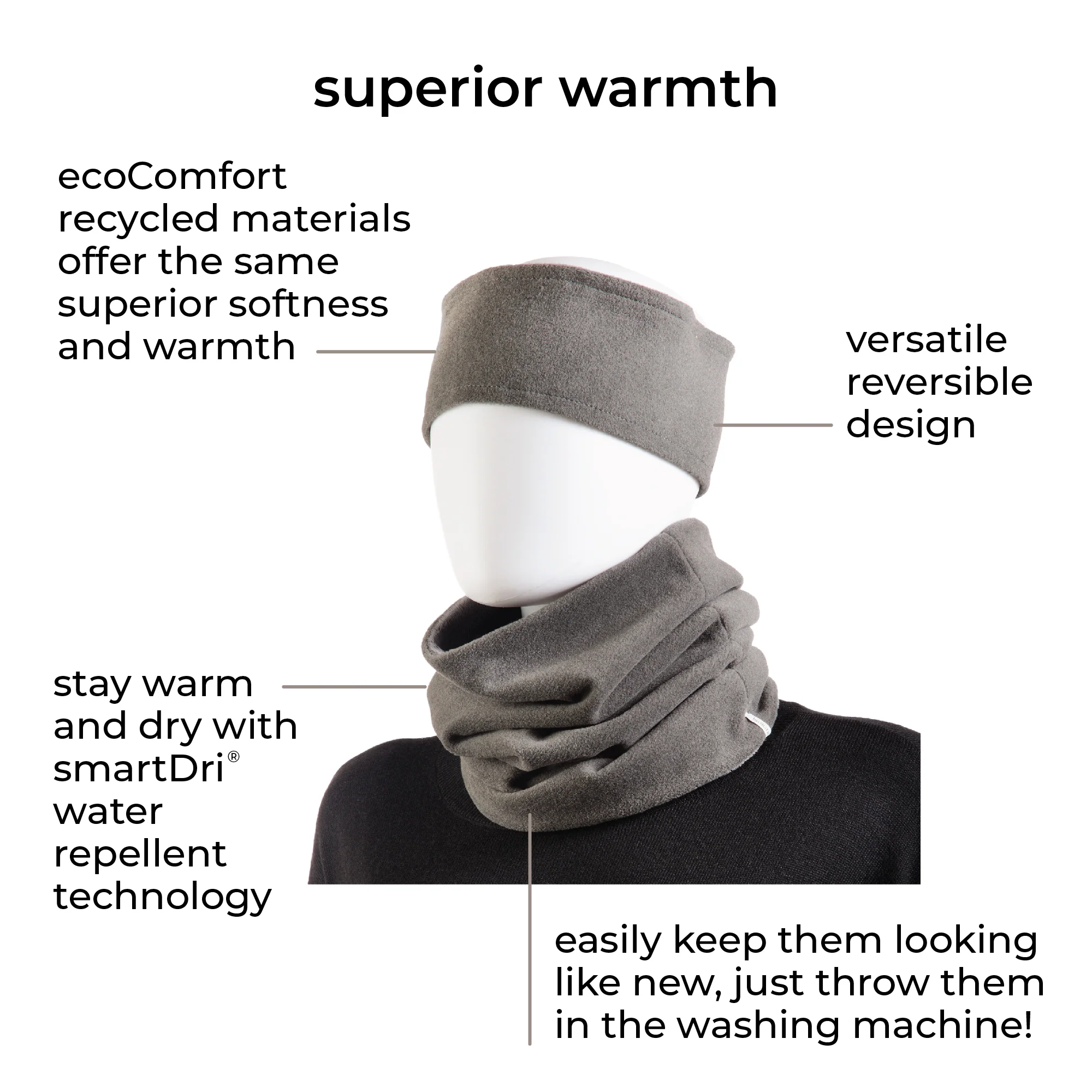 Women’s Recycled Water Repellent Reversible Fleece Scarf in Heather Grey on Mannequin