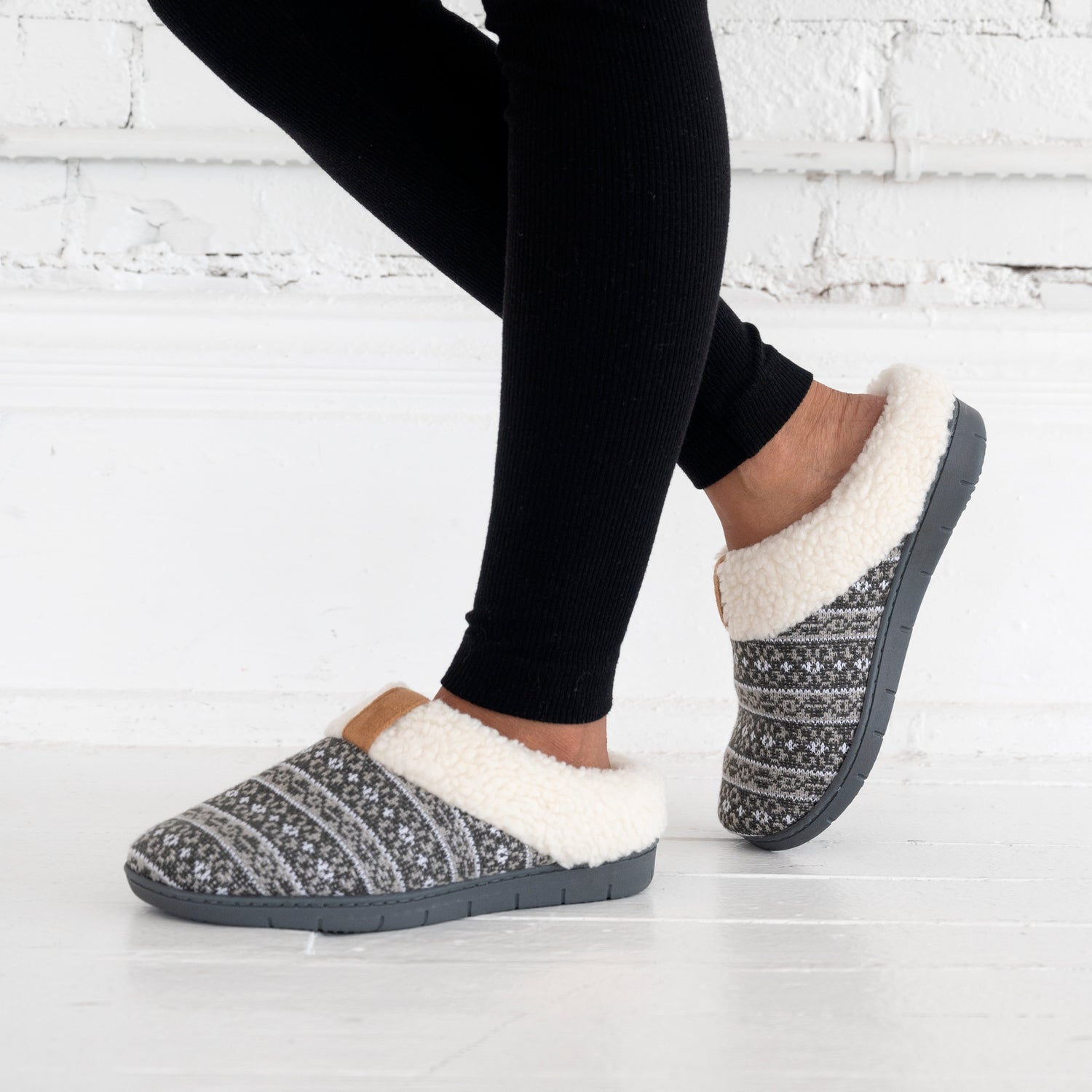 Slip into the kind of comfort winter dreams are made of. With a classic fairisle sweater knit and a plush sherpa collar, this clog wraps your feet in warmth and seasonal style. It’s as if your coziest winter sweater decided to become a slipper.