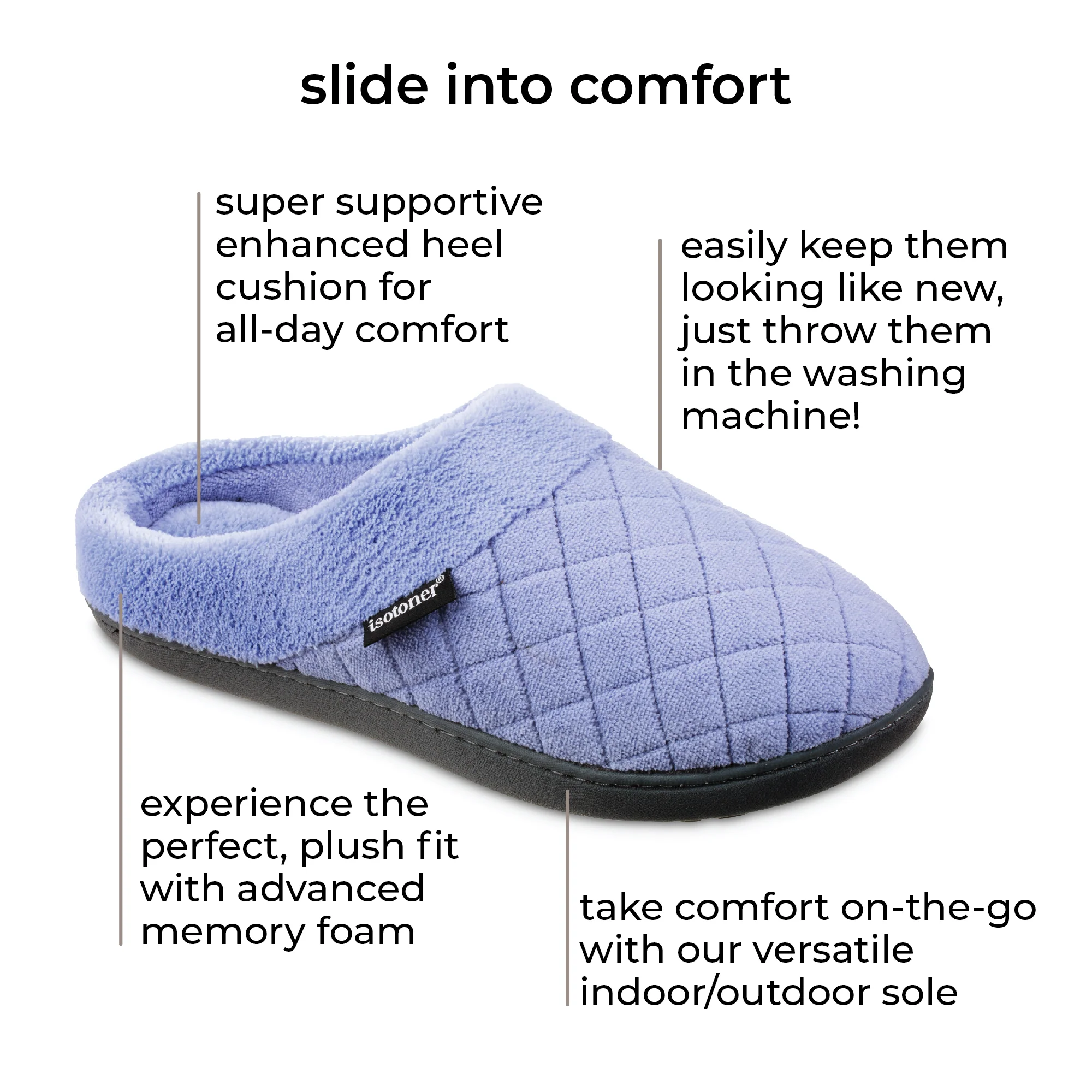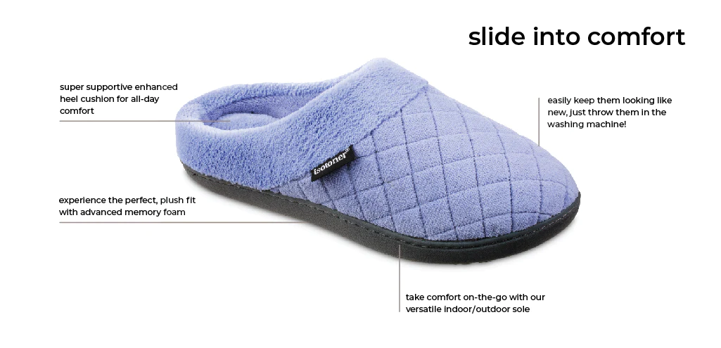 Inside, plush memory foam conforms to your unique shape, while an enhanced shock-absorbing heel cushion delivers lasting support whether you’re moving through rooms or stepping outside. The durable indoor/outdoor sole ensures versatility without sacrificing style.
