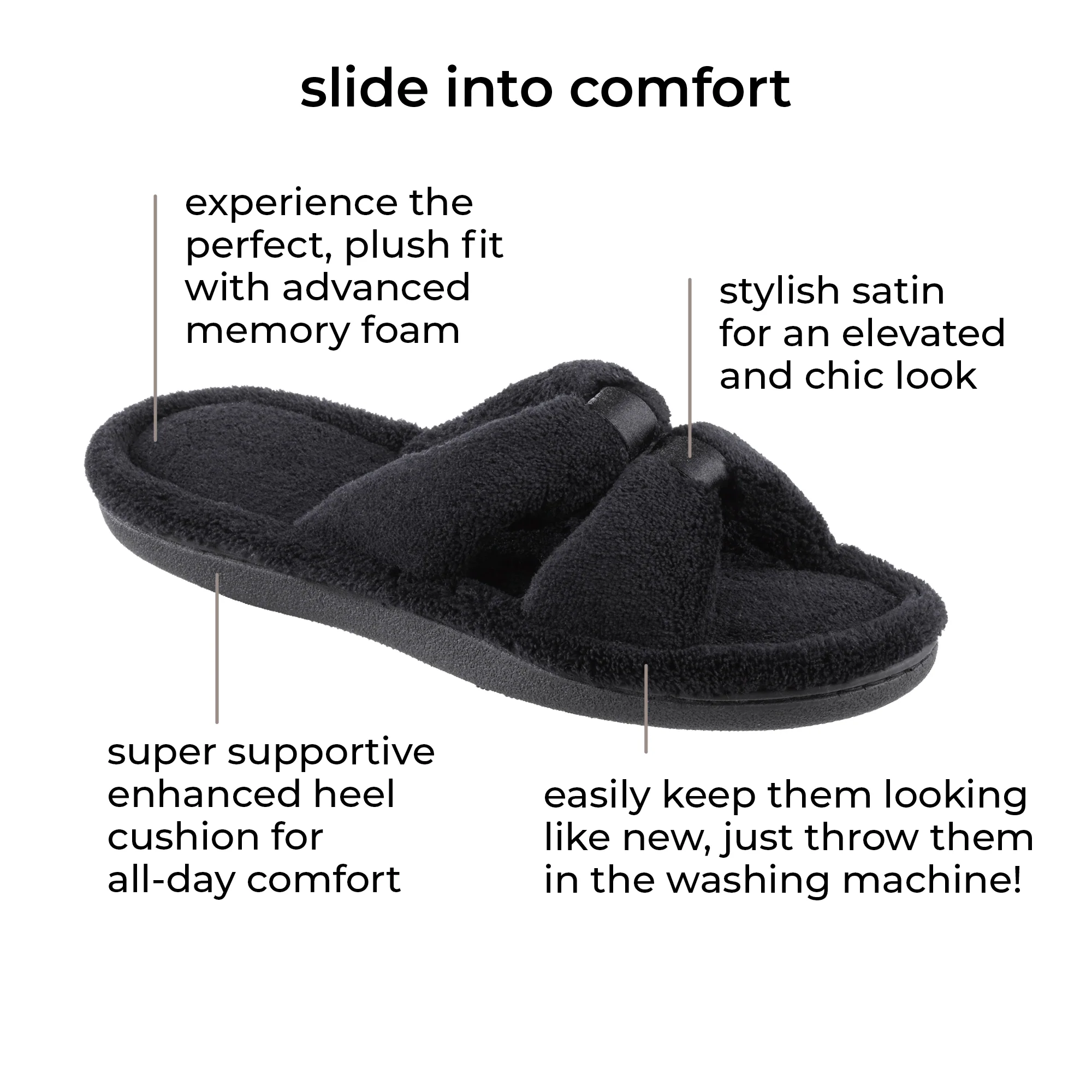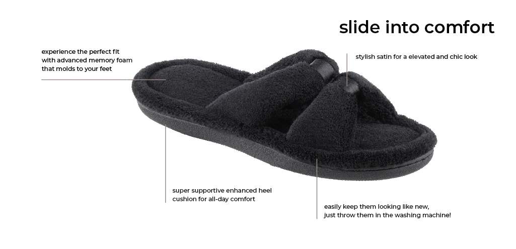 Inside, thoughtful innovation shines. The enhanced EVA heel and memory foam footbed mold to your unique shape, creating a custom cushion that supports you from dawn to dusk. It’s the ultimate in spa-inspired indulgence—Isotoner quality that transforms the everyday into something effortlessly special.