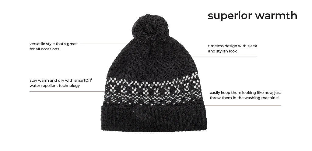 Designed with SmartDri® water-repellent technology, this hat keeps moisture at bay so you stay dry and comfortable wherever your day takes you. Whether you're heading out for a morning coffee run or a weekend walk, it’s the effortlessly warm essential you’ll reach for again and again.