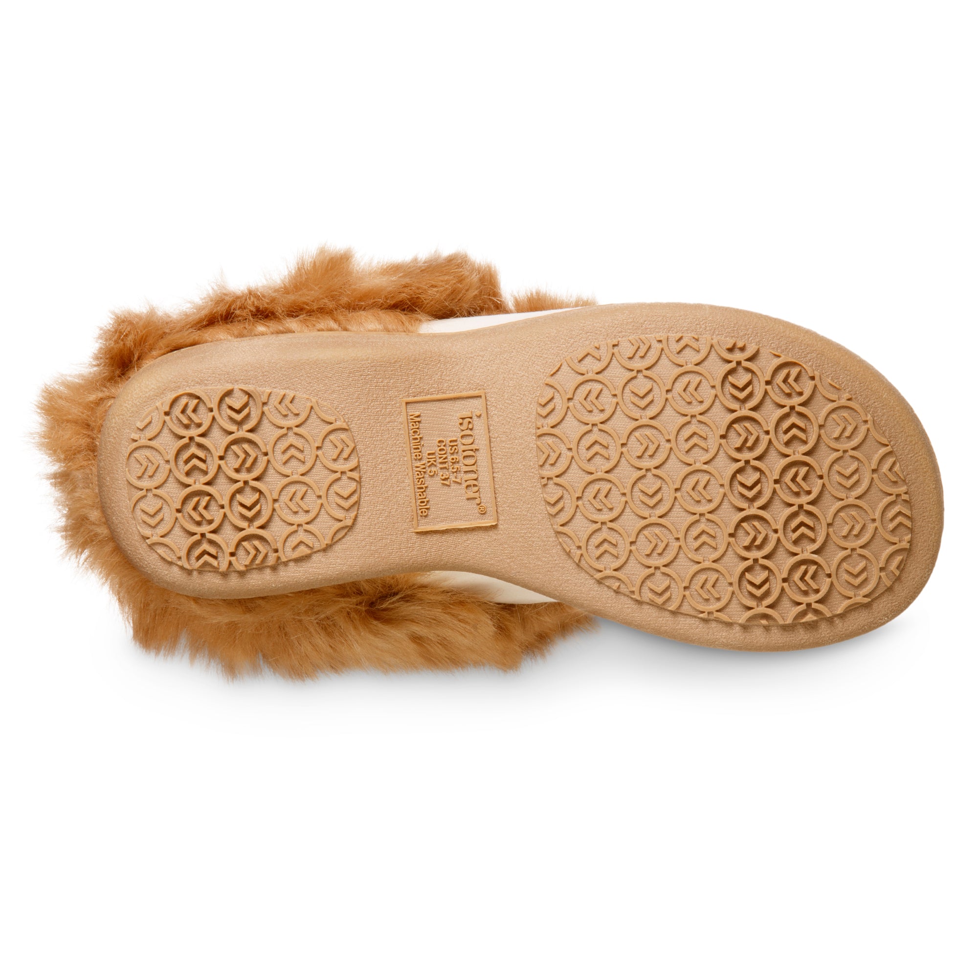 Wrapped in plush velour and finished with a fleece lining and sophisticated faux fur collar, these clog slippers elevate downtime with a touch of curated elegance. The memory foam footbed conforms to your unique shape, delivering a personalized, indulgent feel that supports every step.