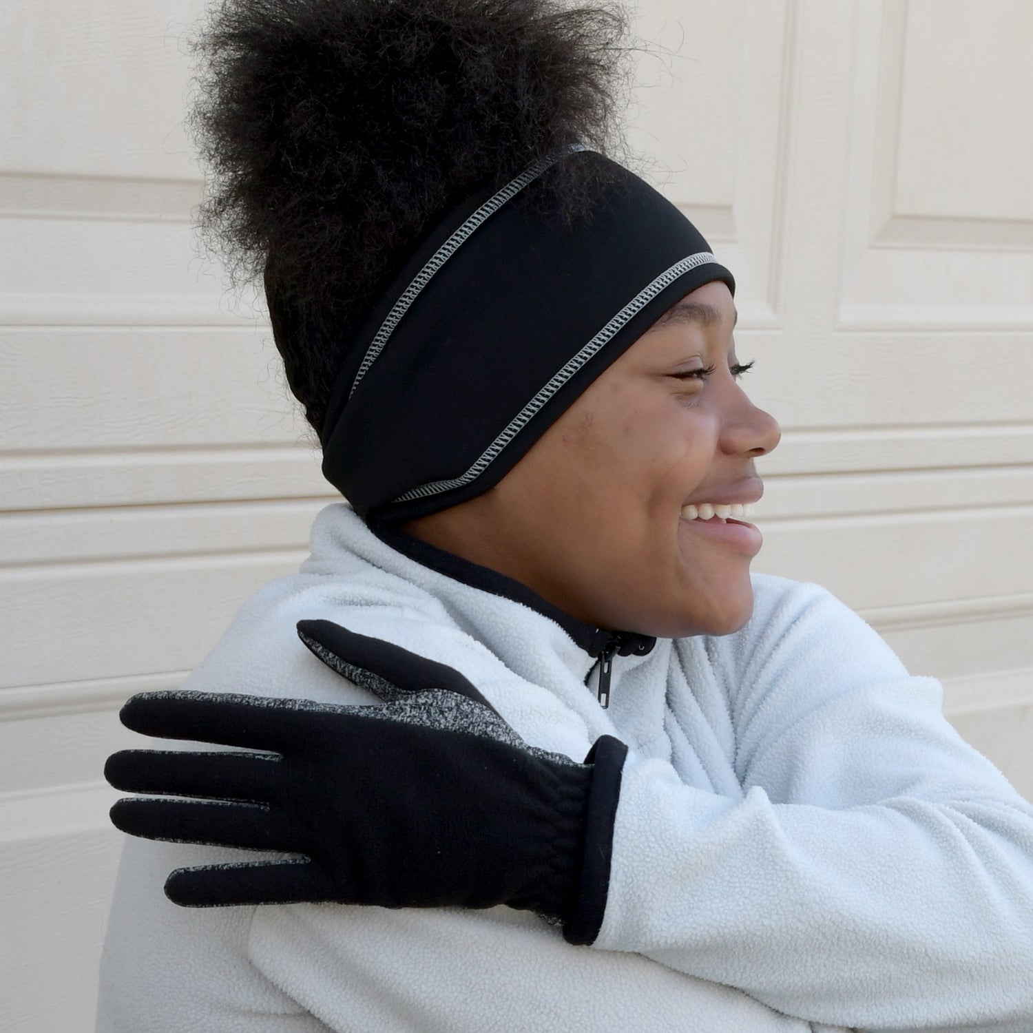 Stretch fleece with spandex palm