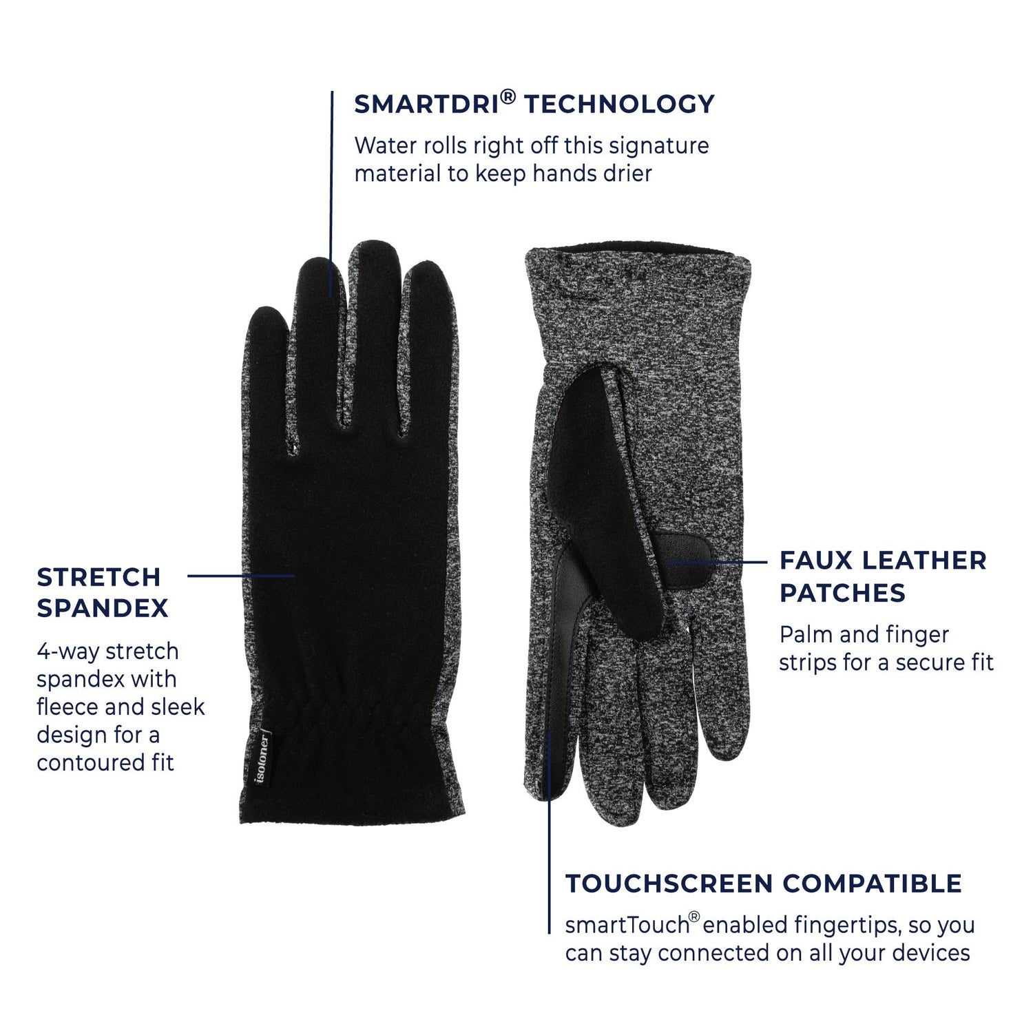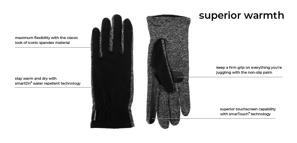 SmartDri® technology repels water so light rain and drizzle roll right off, while SmarTouch® capability keeps you connected without removing your gloves. The 4-Way Stretch fabric contours perfectly to your hands for a fit that feels truly yours.